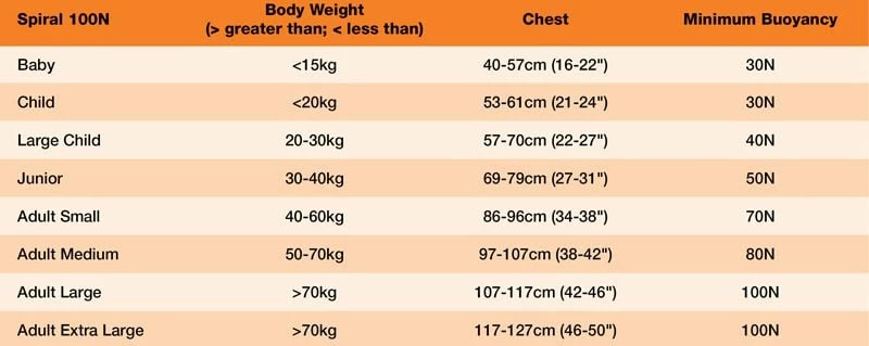 All sizes offer 100N of buoyancy – with the baby and child sizes being fully rated as an ISO 12402-4 approved lifejacket. This means that these sizes will fully support the wearer in the water and work to rotate them into a face-up position to protect the airway. The larger sizes are rated as an ISO 12402-5 approved 50N buoyancy aid. However, these sizes still retain 100N of foam and are a great solution for those seeking the extra reassurance offered by this level of buoyancy compared to standard buoyancy aid products.