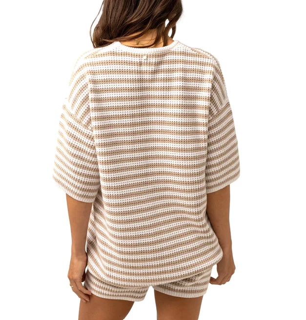 Rhythm Corsica Knit Womens Oversized tee in an Oatmarlee Stripe