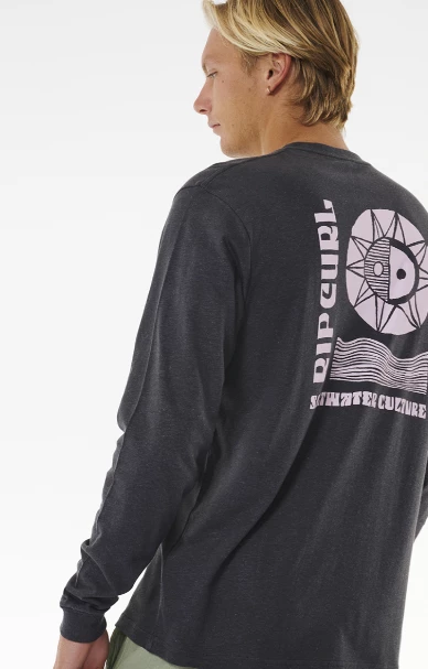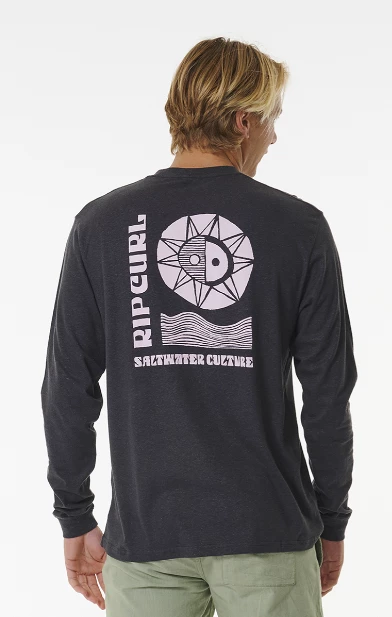 Rip Curl Salt Water Culture Lines Mens Long Sleeve T-Shirt in Washed Black