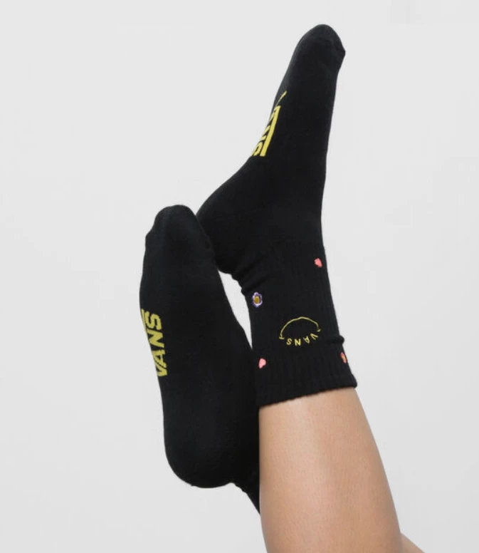 The Embroidered Crew Sock combines a classic, wear-anywhere crew sock with mixed embroidery details for a fun fashion sock with a unique Vans vibe. The black colourway provides the ability to wear it with everything and allows for extra comfort!